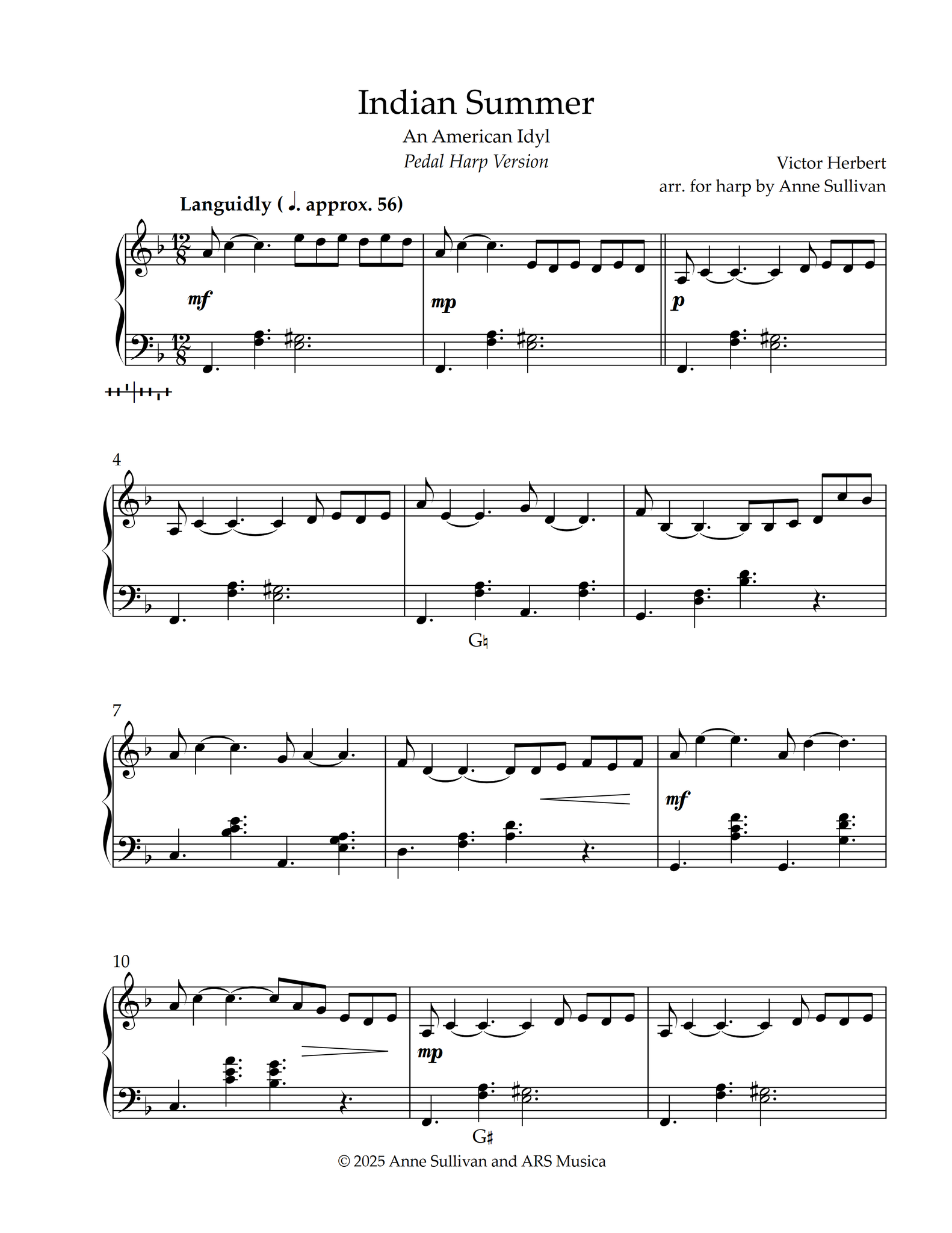 Victor Herbert’s Indian Summer, written in 1923 as a piano solo, captures the warmth of autumn days touched by memory. Beneath its haunting, lyrical melody lies a quiet sense of regret, as if recalling joys that cannot last. This piece is perfect for an autumn-themed program or as part of a Great American Songbook program.
