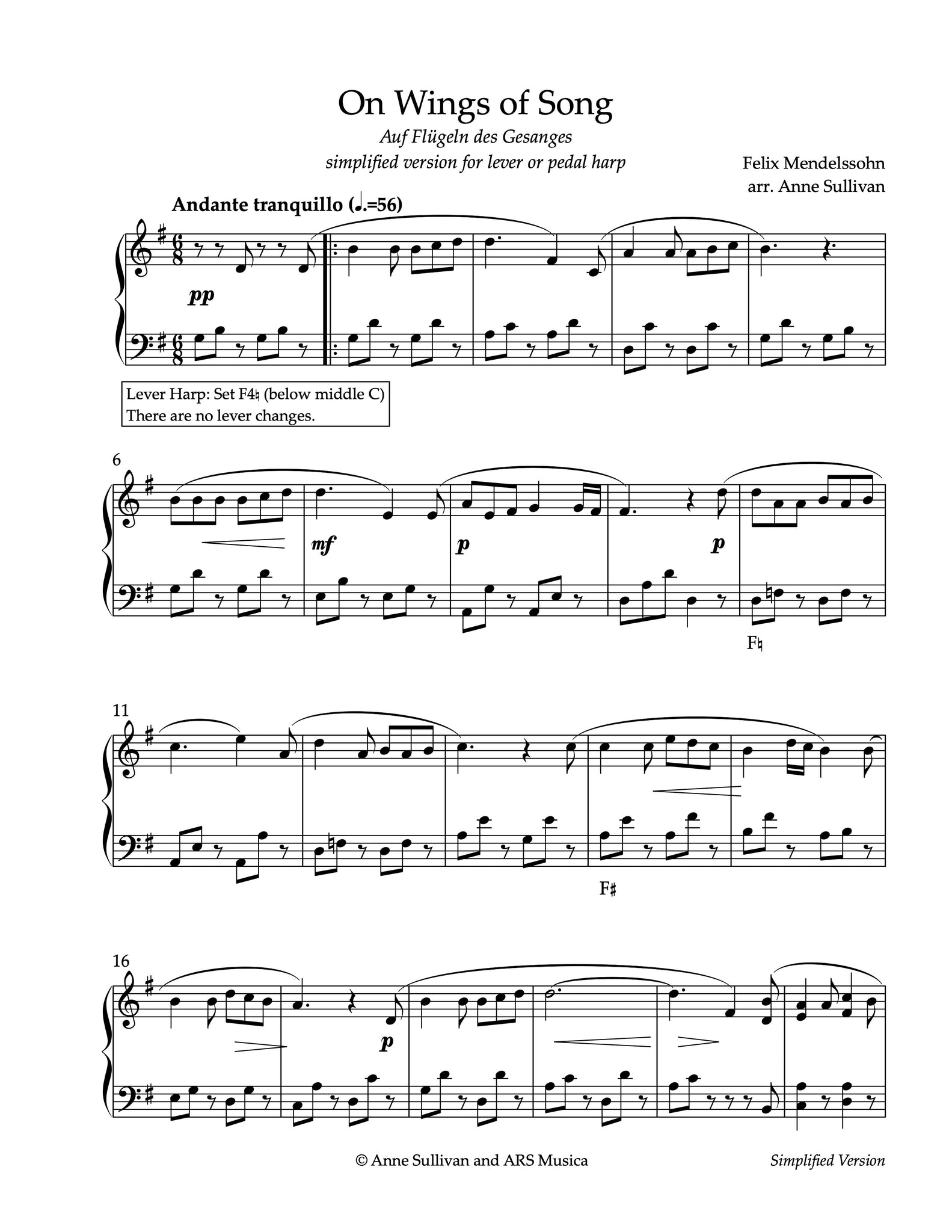 A slightly more difficult pedal harp version with multiple pedal changes (4 pages)